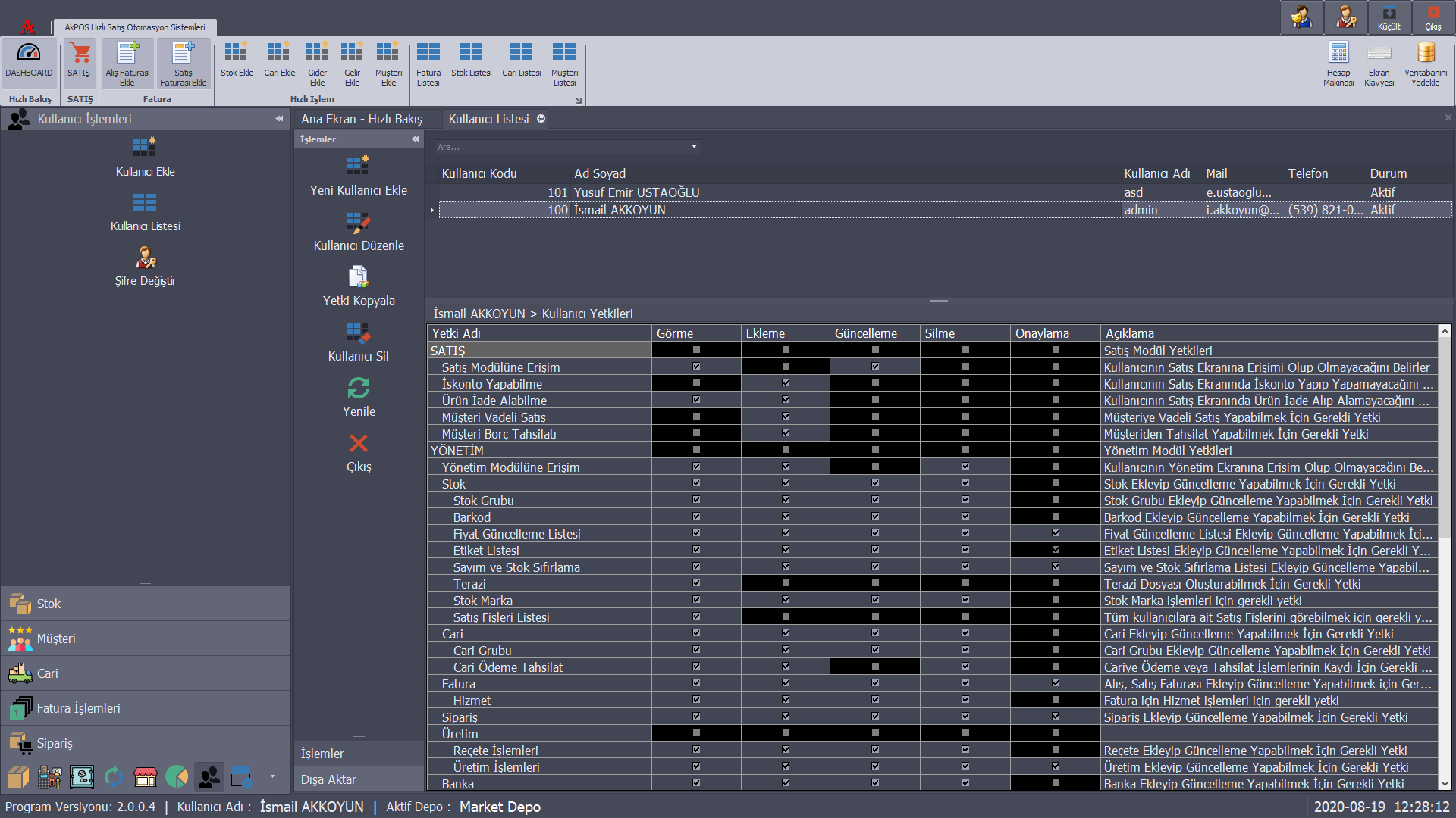 AkPOSHS de tanımlamış olduğunuz tüm personeller için farklı yetkiler verebilirsiniz. Örneğin: Emir isimli kasiyer personeliniz satış yapma yetkisi vardır ancak iade almak için yetkili değildir bu işlemleri sistem üzerinden dilediğiniz şekilde yetkiler vererek ayarlayabilirsiniz. Aynı tip yetkiye sahip personellerin birisine yetkileri tanımlayarak diğer personellere bu yetkileri kopyalabilirsiniz böylelikle zamandan tasaruf edersiniz.